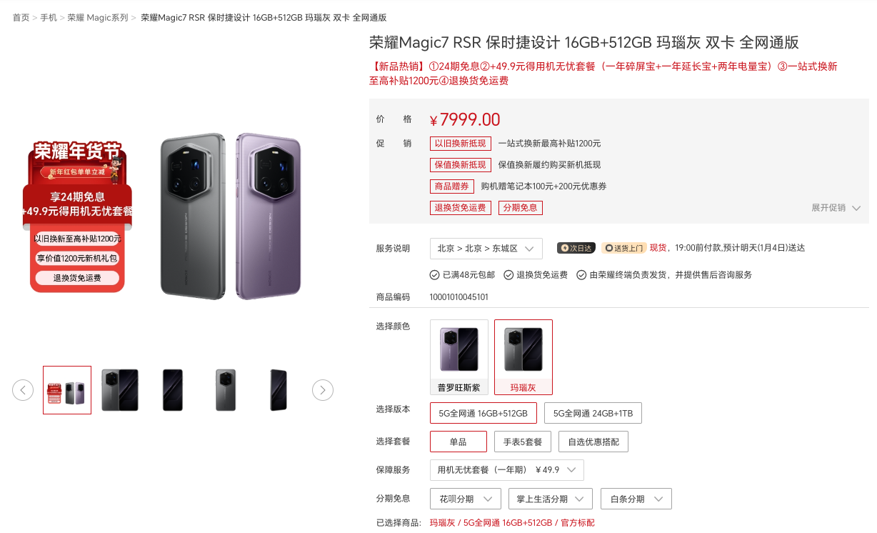 荣耀年货节:Magic 7 RSR保时捷设想享24期免息